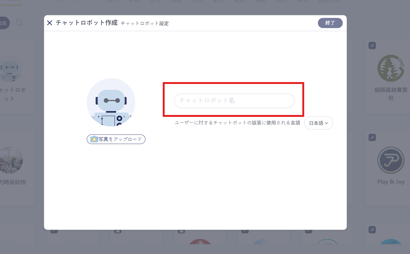 作りたいチャットボットの名前を入力します。