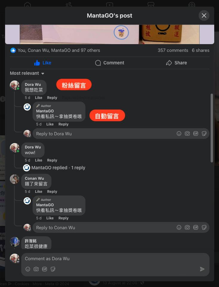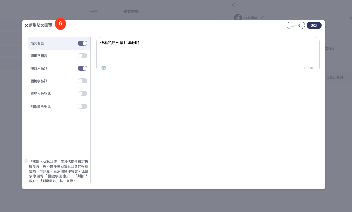 6. 在貼文底下粉絲專頁自動回覆的留言內容