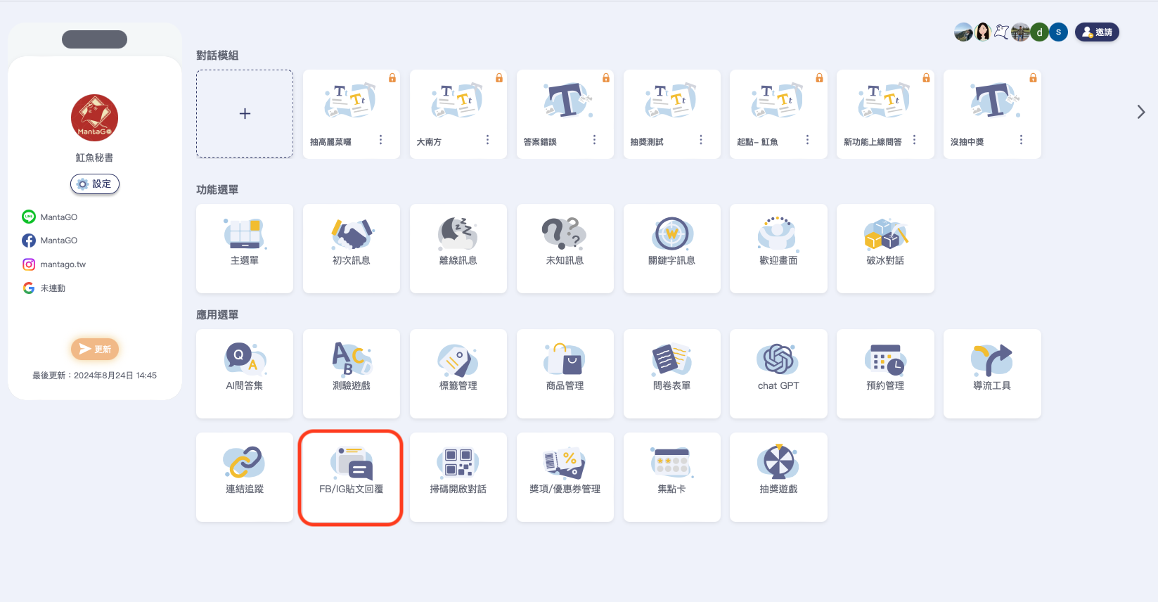 首先到應用選單找到FB/IG貼文回覆